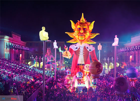 Le Roi entre en scène : c’est le début de la parade du Carnaval de Nice. Un spectacle époustouflant de 2 heures, avec une vingtaine de chars illuminés et de nombreuses grosses têtes qui montre au public la créativité des chars, la grandeur des personnages allant jusqu’à 20 mètres de haut ! Un spectacle où les petits rêvent et les grands retombent en enfance. Il y 5 corsos illuminés durant le Carnaval de Nice : les samedis et mardis, venez découvrir en soirée les corsi carnavalesques illuminés. Le dernier est spécial car c’est l’incinération du Roi et c’est à ce moment-là que l’on dévoile le thème du prochain Carnaval de Nice. Un moment émouvant où tout le monde reprend le chant : Nissa La Bella pour clôturer l’événement.